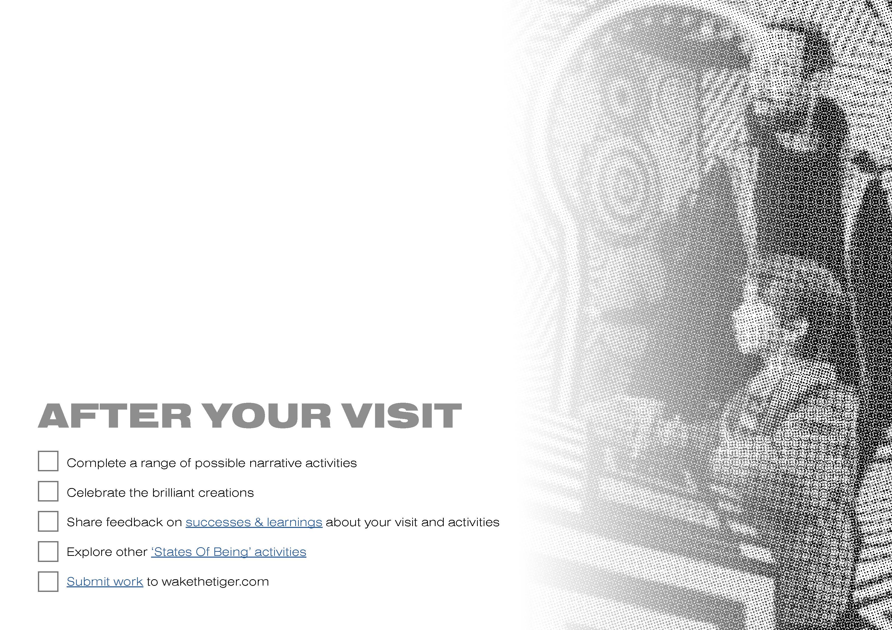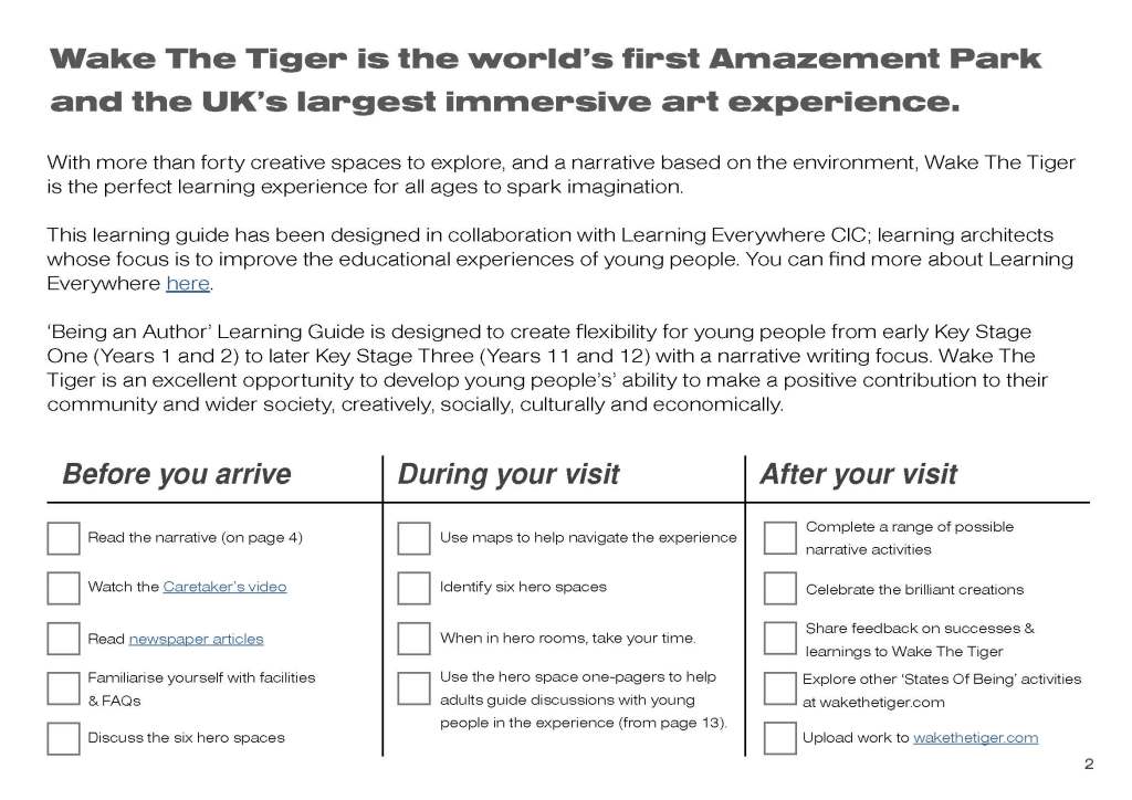 Creative writing strategy for teachers bringing young people to Wake The Tiger. Designed to be simple, printable, and accessible.
